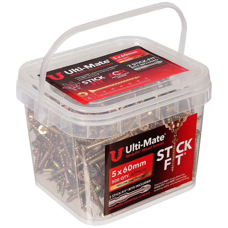 Ulti-Mate Stick-Fit Woodscrews Tub 5.0 x 60mm (500pk) in Gold
