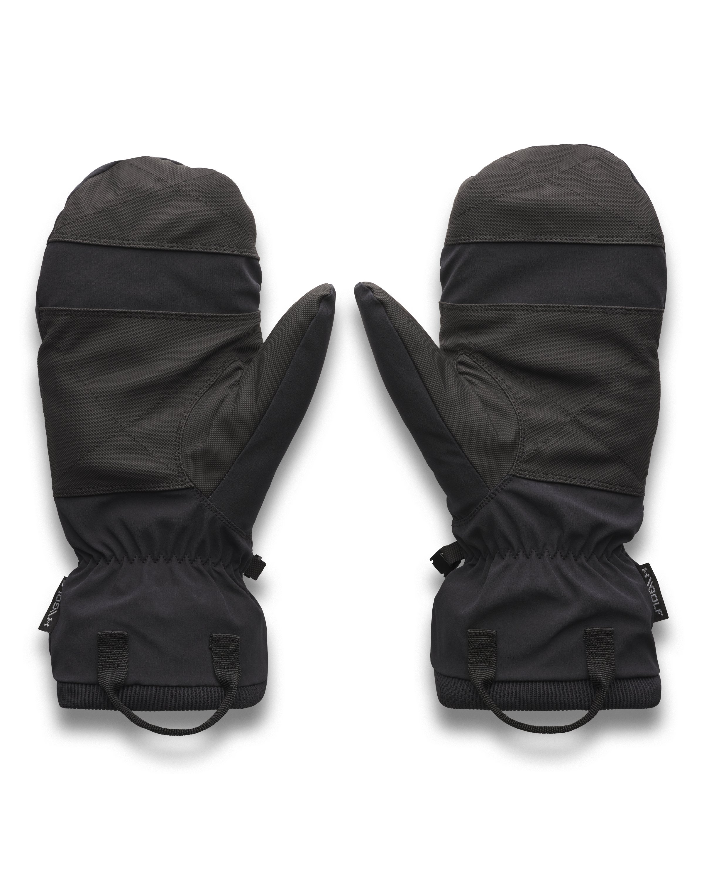 UA Storm technology repels water without sacrificing breathability|Durable stretch-woven exterior fabric with soft fleece interior lining for comfort & warmth|Strategic 200g synthetic insulation on back of hand & 100g on palm for warmth without any excess bulk|Coating on mitt tips, palm & thumb for added grip support|Stretch ribbed cuff helps trap warmth with loop for quick & easy on/off|Built-in tee holder on back of hand|Mini clips keep mittens together when not in use|Uses a fluorine-free water repellent treatment - Style #: 6000994|Metallic logo|87% Polyester/13% Elastane|Imported