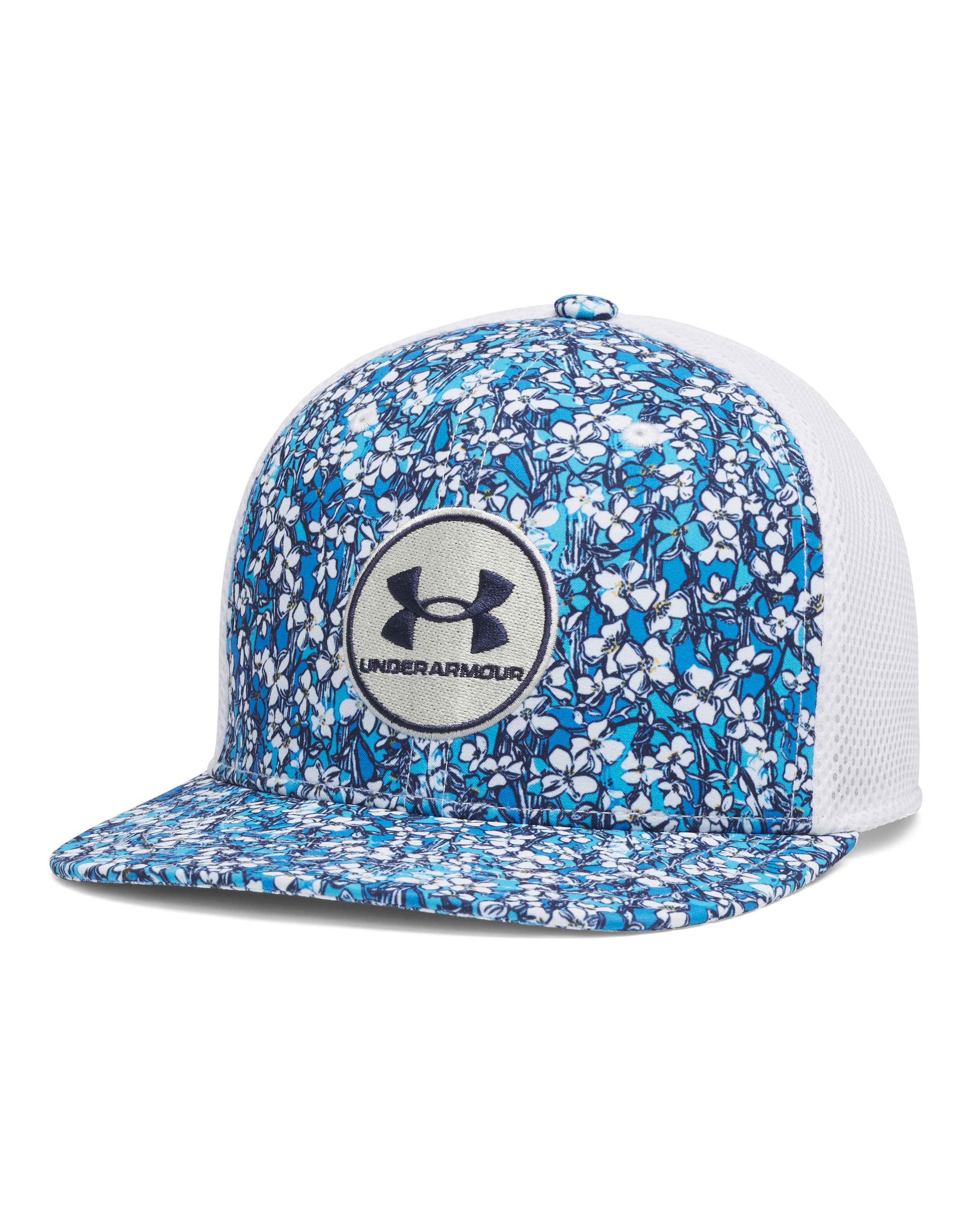 UA Mid: Modern square mid-crown with structured front panel—sits slightly higher, just off the head|Durable stretch fabric on front panel with UPF 50+ protects your skin from the sun's harmful rays|Spacer mesh back & side panel for all-around ventilation|Iso-Chill sweatband helps disperse body heat, making it feel cool to the touch|Side fabric loop for holding a tee|Stretch fit design for customized comfort - Style #: 1389887|Embroidered logo|95% Polyester/5% Elastane|Imported - UA Classic Fit: pre-curved visor & structured front panels that maintains shape with a low profile fit