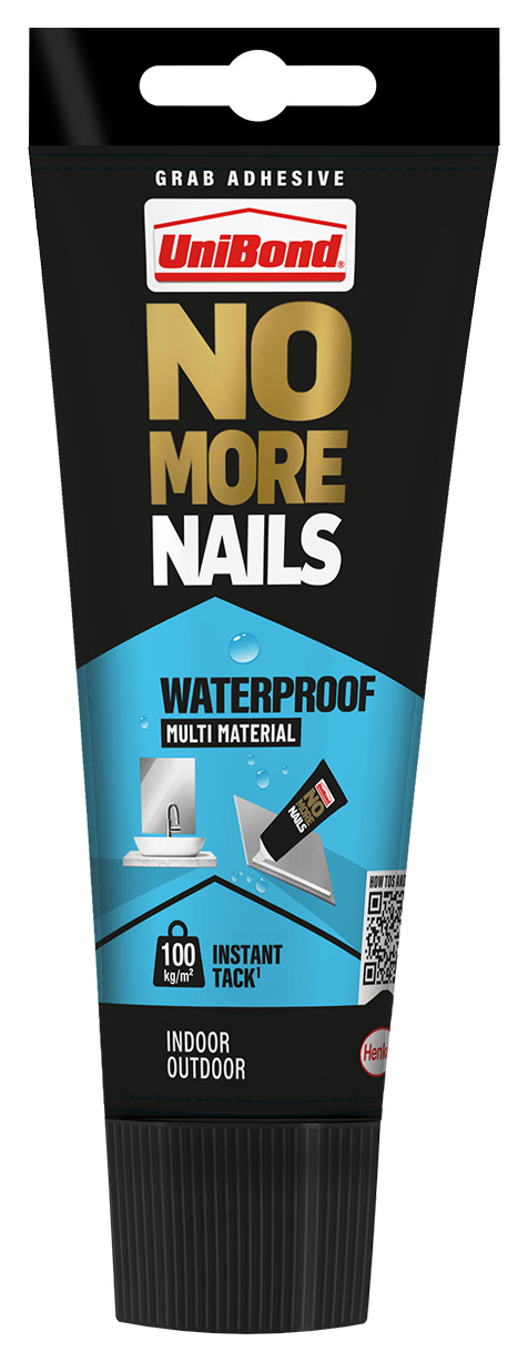 Unibond No More Nails Waterproof Tube - 206ml - UniBond No More Nails Waterproof is a high strength waterproof adhesive that eliminates the need for nails and screws in many DIY and repair jobs. For both interior and exterior use including bathrooms.