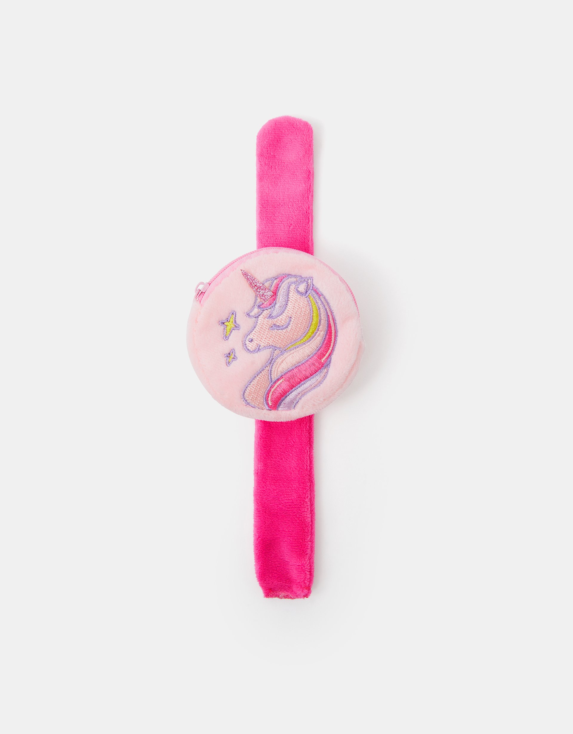 Snap. Spend. GO! A cute purse that doubles as a bracelet, it's designed on a fluffy slapband with a magical unicorn stitched on the front. Don't go to the shops without it! Warning! Choking Hazard—Small parts. Not suitable for children under 3 years old.
