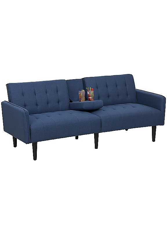 This three-seater sofa bed is a stylish and functional piece that effortlessly combines comfort with practicality - ideal for small flats, guest rooms, or any home in need of a space-saving solution. Designed with a convenient click-clack mechanism, it transforms from a sofa to a bed in just seconds, providing a generous sleeping area for overnight guests or spontaneous naps. The backrest features a three-position recline, allowing you to sit upright, recline, or lie flat. Each side of the split back can be adjusted independently, so you and your guest can relax in your preferred position. Whether you're reading, watching TV, or getting ready for bed, the flexibility of this sofa ensures you're always comfortable. For added support and comfort, this sleeper sofa is filled with memory sponge, S-springs, and elastic bands, giving it a supportive yet bouncy feel. The linen-look fabric is soft, breathable, and adds a modern, sophisticated touch. Hidden legs fold out when the bed is in use, providing extra stability without interfering with the sleek silhouette when in sofa mode. A standout feature is the pull-down centre armrest, which includes two integrated cup holders - perfect for movie nights or relaxing with your favourite drink. Adjustable foot pads help keep the sofa stable on uneven floors and protect your flooring from scratches.Maximum Load Capacity: 300 kgAssembly requiredConverts quickly between a three-seater sofa and a bedConverts quickly between a three-seater sofa and a bedMemory sponge with S-spring and elastic band construction for comfort and supportLinen-effect upholstery for a breathable, modern finishPull-down centre armrest includes two cup holdersHidden fold-out legs for extra stability in bed modeAdjustable foot pads protect your floor and keep the sofa levelFlame-retardant materials used for added safetyLinen (100% Polyester), Sponge, Polypropylene (PPSofa dimensions approx. 79.5H x 189W x 78D cmBed dimensions approx. 57.5H x 189W x 98D cmSeat dimensions approx. 43H x 175W x 52D cmSeat thickness approx. 21 cmTable (cup holder) dimensions approx. 10H x 27.5W x 43.5D cmBack rest dimensions approx. 41L x 175W x 14.5D cmArmrest dimensions approx. 58H x 6.5W x 72LPlease remember to measure your available space before ordering. If using on an un-carpeted floor we recommend rubber or felt protection pads be used under the legs to avoid damage to your floors.