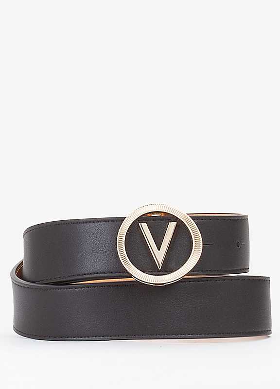 This Valentino Flame Nero/Gold Belt adds a touch of elegance and style to any outfit. Made with high-quality materials, it guarantees durability and long-lasting wear. Its sleek design features a striking flame motif and a gold buckle for a bold and luxurious look. Suitable for both casual and formal occasions, this belt is a must-have accessory for any fashion-forward individual. Elevate your wardrobe with this statement piece that exudes sophistication and class. 100% PUWidth approx. 3.2 cm | black leather belt gold buckle, black gold belt, gold metal belt, faux leather belt, gold waist belt