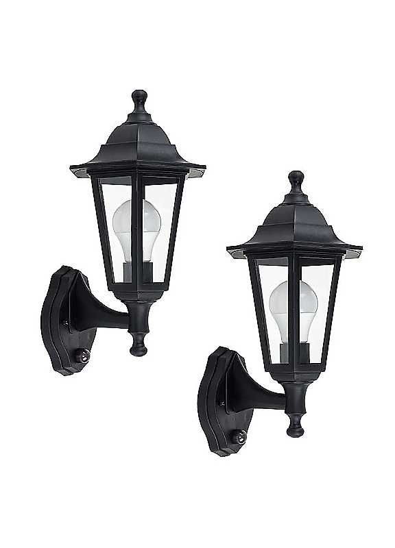 A pair of these beautiful, traditional style outdoor wall lights would make a statement on any external wall. Constructed from durable black resin and fitted with an unobtrusive state-of-the-art PIR motion sensor.Set of 2Bulb Required: E27Max Wattage: 60WPrimary Material: Plastic - PolypropyleneSecondary Material: GlassDimensions approx. 99.5H x 12W x 12D cm