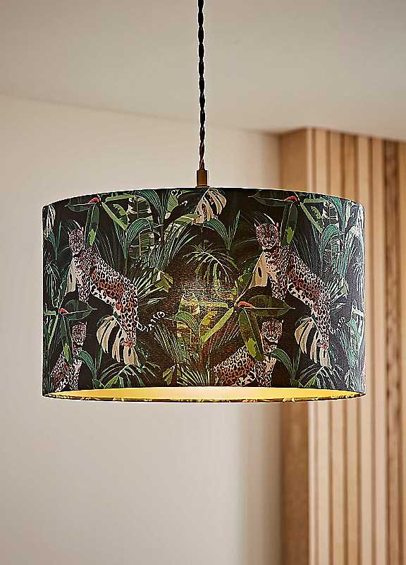 Lions and tigers and bears, oh my! Well, more accurately, leopards and bushes and trees. Anyway! The Addalyn shade is anything but scary, it's an absolute banger, especially if you're looking to add a touch of fun and creativity to your home d©cor. It would fit in well with equally busy furnishings, or as a standalone feature in a more stripped back space, it's basically magic. Plus, no matter if you choose to use it on a lamp or hanging from the ceiling, its reversible gimbal and easy fit features make it a breeze to pop on. Go on, free your mind as well as your inner animal!Bulb Required: BC B22Primary Material: FabricDimensions approx. 20H x 35W x 35D cm