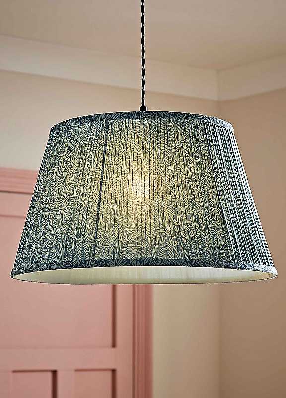 Alba is a pleated, tapered ceiling light shade with serious style credentials. Its William Morris-inspired fabric brings pattern and personality to your space, while the easy-fit design makes installation a breeze, no tools needed! It's a quick and charming way to refresh any room with a nod to classic design and a twist of modern convenience.Bulb Required: BC B22Primary Material: FabricDimensions approx. 25H x 45W x 45D cm
