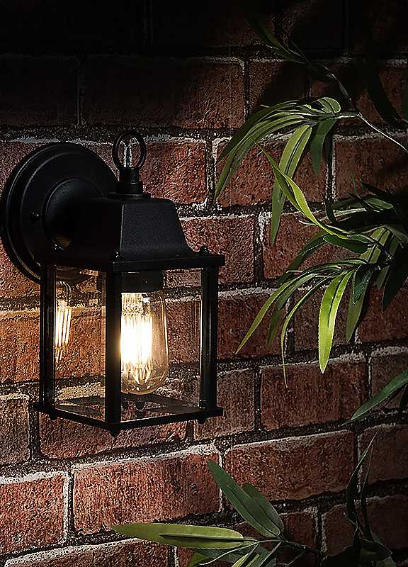 This IP23 rated square outdoor wall light lantern would make a statement on any external wall. Made from durable weather resistant black metal, making it the perfect light for outdoor installation.Bulb Required: E27Max Wattage: 60WPrimary Material: MetalDimensions approx. 21.5H x 11.5W x 14.5D cm
