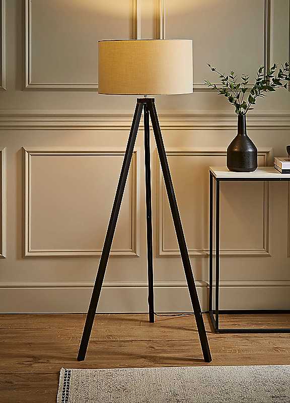 Say hey to the Barbro, your new go-to for glow-up vibes. This wood tripod floor lamp is a total style chameleon, looking just as good in a modern flat as it does in a cosy cottage. It's topped with a drum shade , adding the perfect pop of texture and vibes, and the handy foot switch makes turning it on a breeze. Fuss-free, full of charm, and ready to light up any corner you fancy.