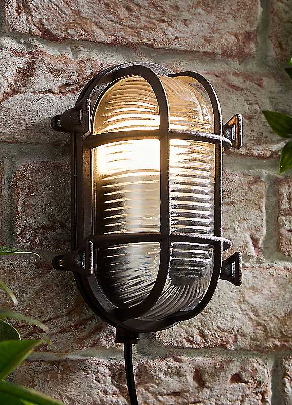 These nautical style outdoor wall lights are perfect for anyone looking to inject a sense of the seven seas into their garden. With an IP64 rating, you don't need to worry about weather or rain damage.Bulb Required: E27Max Wattage: 50WPrimary Material: Metal - AluminiumSecondary Material: PlasticDimensions approx. 10.5H x 13.5W x 20.5D cm