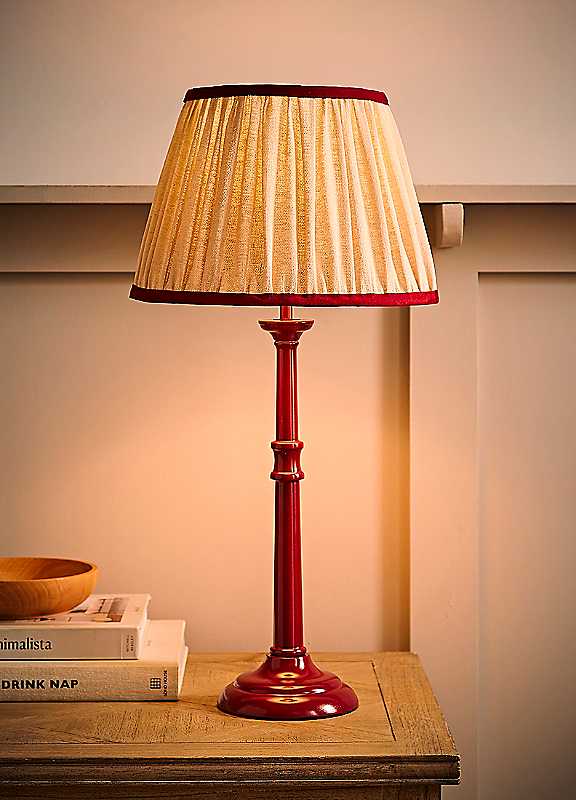 Clara is all about bringing warmth and elegance to your home. With a bold base in black or burgundy and a pleated shade trimmed to match, this lamp is a stylish way to add a soft, inviting glow. Its classic design feels timeless, while the colour options give it a playful twist. Perfect for bedside tables, hallway consoles, or living room corners, Clara turns any spot into a cosy, welcoming space you will love.Bulb Required: SES E14Bulb not includedWood, Fabric - LinenDimensions approx. 56H x 18W x 18D cm