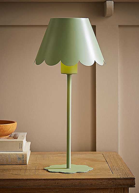 Add charm to any space with the Hattie rechargeable table lamp. Featuring a sweet, scalloped edge design, this cordless lamp is available in light blue, green, and pink, perfect for mixing and matching. Its rechargeable battery means you can place it anywhere, from bedside tables to cosy reading corners. Complete with bulb and battery, Hattie is ready to glow from the get-go.RechargeablePrimary Material: MetalDimensions approx. 40H x 19W x 19D cm