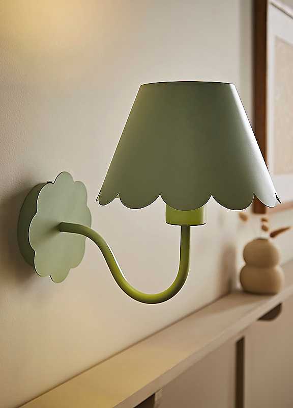 Add charm to any space with the Hattie rechargeable wall light. Featuring a sweet, scalloped edge design, this cordless light is available in light blue, green, and pink, perfect for mixing and matching. Its rechargeable battery means you can place it anywhere, from bedside tables to cosy reading corners. Complete with bulb and battery, Hattie is ready to glow from the get-go.RechargeablePrimary Material: MetalDimensions approx. 23.5H x 19W x 19D cm | battery operated wall lights, rechargeable wall light, scalloped lamp, wall decorative light, green ceiling light, cordless wall light, wall lights for bedroom, green led lights