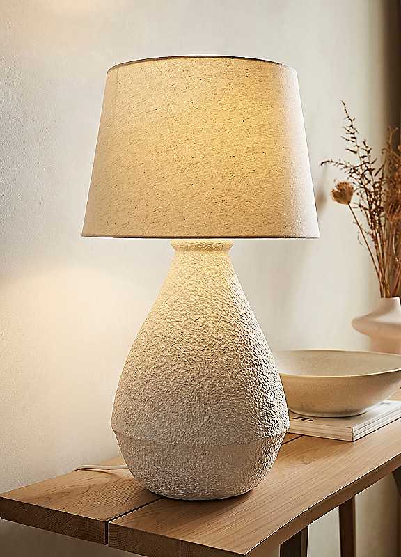 Helena's here to add a touch of luxury and a whole lot of charm! With its hand-finished cream ceramic base and unique speckled design, it's the lamp that gets people talking. The fabric cable adds a sophisticated touch, while the natural colour linen shade creates a soft, warm glow that makes any room feel inviting. Whether you're after an elegant statement or simply need a stylish light, Helena's got your back - she's the lamp that shines with personality!Bulb Required: E27Max Wattage: 10WPrimary Material: CeramicSecondary Material: Fabric - Tetron CottonDimensions approx. 59H x 33W x 33D cm