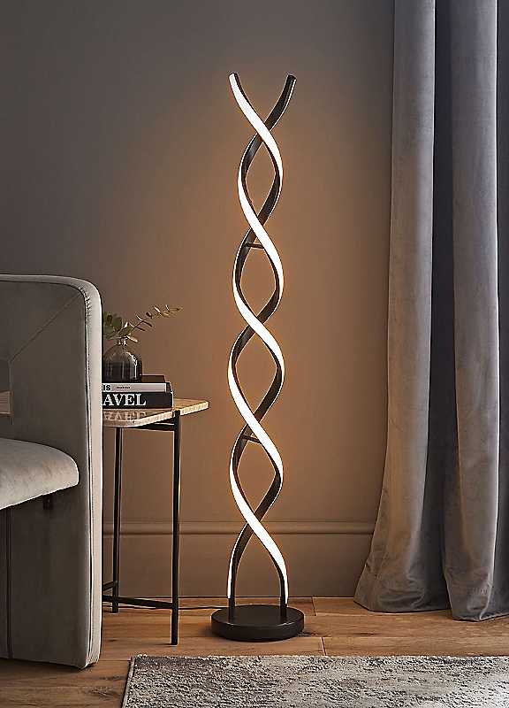 A modern miracle of interior decor! The Infinity LED Double Twist Floor Lamp in matte black includes integrated LED lighting that'll twist and turn everyone's attention. Add a touch of pizzazz to a minimalist home or match up seamlessly with a modern one. LED integrated with a lifespan of approximately 25,000 hours! A real statement piece, that has been crafted from a sturdy combination of metal and PVC in a sophisticated matte black finish, and fitted with a foot switch for ease of use. LED colour temperature is 3000k warm white, a warm and vibrant shine.