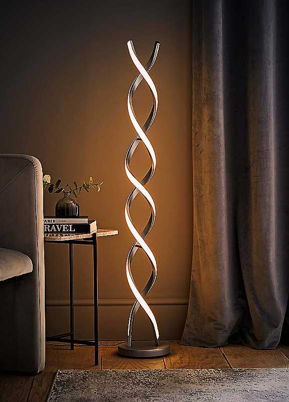 The Infinity double twist floor lamp is lighting with a twist (literally). Its sculptural helix design and matte silver finish make it a true head-turner. Built-in LEDs create a warm, ambient glow that's perfect for modern lounges or cosy spaces. Energy-efficient, stylish, and fuss-free, just plug it in and let the curves do the talking. Who said practical can't be show-stopping?Bulb not IncludedBulb Required: (Integrated) Max Wattage: 24WPrimary Material: MetalDimensions approx. 120H x 20W x 20D cm | floor lamps for living room, led floor lamp, contemporary floor lamp, metal floor lamps, modern floor lamp, twist floor lamp, minimalist floor lamp