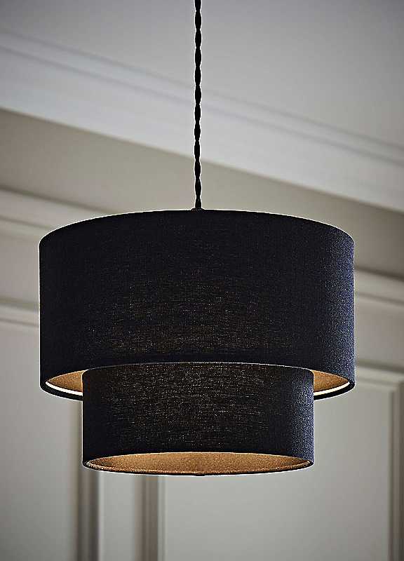 ValueLights Jodie 2 Tier Black Linen Ceiling Drum Lamp Shade