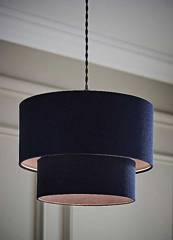 ValueLights Jodie 2 Tier Navy Linen Ceiling Drum Lamp Shade