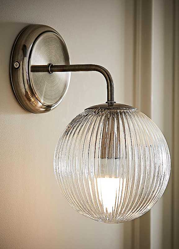 The Kempton ribbed glass globe wall light combines classic design with contemporary finishes. The ribbed glass shade diffuses light softly, creating warmth and ambience in any setting. Kempton suits both modern and traditional interiors. Use it as a single accent or double up either side of a bed, mirror or doorway for balance and style.Bulb not IncludedBulb Required: E14 Max Wattage: 7WPrimary Material: Metal. Secondary Material: GlassDimensions approx. 26H x 15W x 19D cm | brushed chrome wall lights, modern wall lights, ribbed glass lamp, glass wall lights, wall lamp glass, chrome wall lights, lighting wall mount, glass shade wall lights, wall mounted bedside lights, wall mounted wall lights, decorative wall light, wall sconce glass shade, glass globe lamp, ribbed glass wall light, contemporary wall lights, wall mount sconce lights