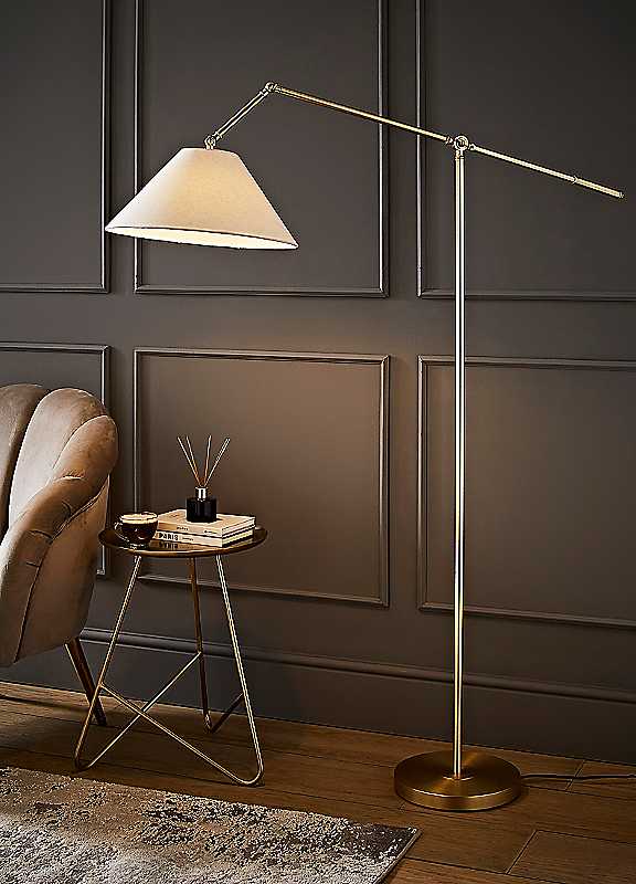 ValueLights Layla Brushed Gold Adjustable Floor Lamp with Linen Shade