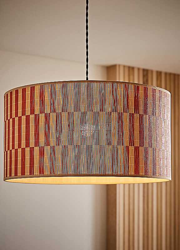 Refresh your space in seconds with the Lori checker geometric bamboo shade, a bold, tool-free lighting upgrade. Its eye-catching pattern adds playful energy, while the natural bamboo brings warmth and texture. Designed with an easy-fit mechanism, it slips onto most standard fittings effortlessly. Ideal for renters, quick room makeovers, or anyone who loves standout style without the stress.Bulb Required: BC B22Primary Material: Wood - BambooDimensions approx. 23H x 45W x 45D cm