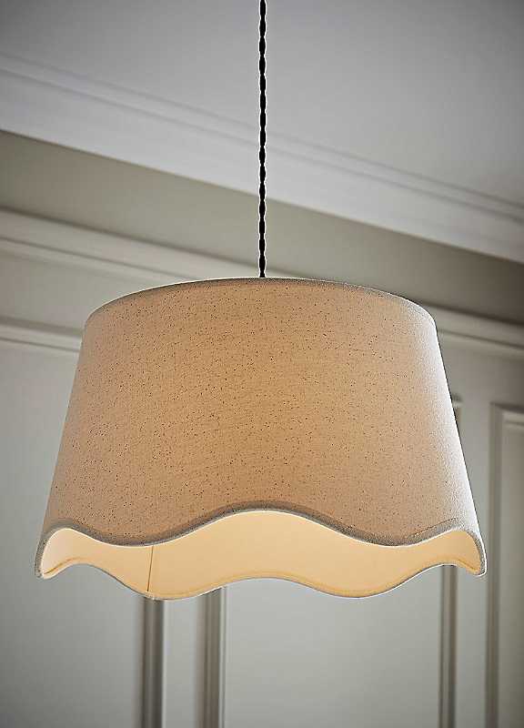 Maybe she's born with it. Maybe it's Mabel linen shade! With a stylish scalloped edge and colour-matched inner and trim, the Mabel linen lampshade looks like it just strutted off the runway at Paris Fashion Week. Perfect for adding a stylish touch to your living room setup or bringing a bit of flair to your bedroom.Bulb Required: BC B22Primary Material: Fabric - LinenDimensions approx. 25.5H x 45W x 45D cm