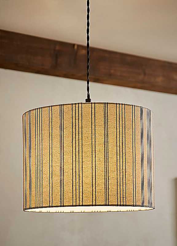 Give your lighting a striped makeover with the Hallie linen lampshade, perfect for both table lamps and ceiling lights or the large shade is perfect for both floor lamps and ceiling lights. With bold, on-trend stripes, it's a surefire way to add a touch of class to any room. Whether you're illuminating a cosy corner or making a statement in the centre of the room, this small drum shade does it all, lighting up your space with style. Don't just shade your lights, let them shine with this chic, playful design! Faux Linen Dimensions approx. 22H x 29.5W x 29.5D cm