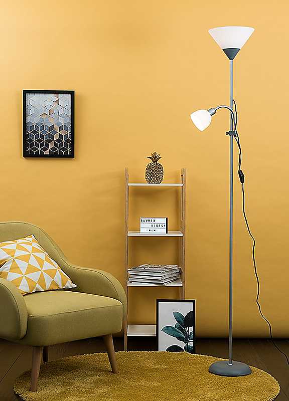 The Mozz mother and child floor lamp gives you the perfect lighting solution from the single stem uplighter floor lamp that comes with an adjustable arm focus lamp. Perfect for placing in living rooms, bedrooms, hallways or in the office, this stylish and contemporary floor lamp gives you the flexibility you need for your home.