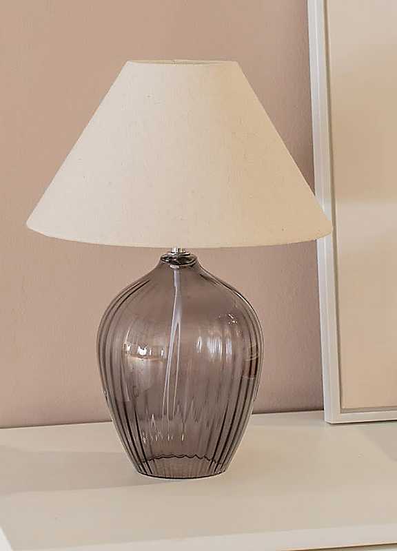 This table lamp features a glass base, perfect for adding a sleek and contemporary touch to any space. Complete with a fabric tapered lampshade in a natural finish. The in-line rocker switch provides convenient control, making it easy to illuminate your space. Available in a blush or grey finish, this lamp will illuminate your home while creating a visual point of interest.Brand: ValueLightsBulb Required: E14Max Wattage: 10WPrimary Material: Glass, Secondary Material: FabricDimensions approx. 34H x 25W x 25D cm | modern table lamp, glass table light, grey lamps living room, grey lamps bedroom, table lamp living room, table lamp bedroom