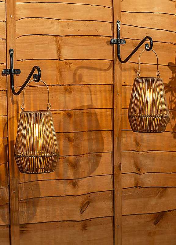 Bring a bit of tropical flair to your outdoor space with this pair of solar bamboo-style lanterns! Designed to infuse your garden with a relaxed, nature-inspired vibe, these lanterns light up effortlessly at night using solar power. Their natural bamboo look adds a stylish touch, while the solar feature means no wires or fuss. Just eco-friendly charm. Let your garden shine with a warm, ambient glow, all day, every day! They can be placed on a tabletop or hung up using the handy handle.Pack of 2Manufacturer's 1 year guaranteeWipe clean onlyAvoid household cleaners/abrasivesPlastic - PolyethyleneDimensions approx. 31.8H x 16W x 16D cmPlease Note - The recommended charging time for full charge is at least 4 hours.