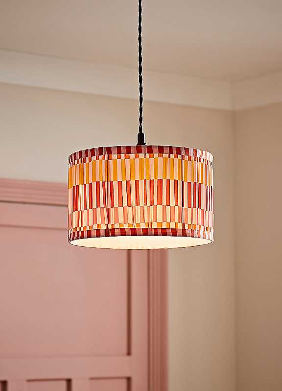 Rae is a pleated lampshade with warm, sunset-inspired stripes and a colour-matched inner for a seamless glow. It's designed for easy fitting, no tools required. The bold pattern and soft texture bring instant charm to any space, whether used on a ceiling pendant or lamp. Rae is the perfect way to add colour, character, and a touch of retro flair to your home lighting.Bulb Required: BC B22Primary Material: FabricDimensions approx. 15H x 25W x 25D cm