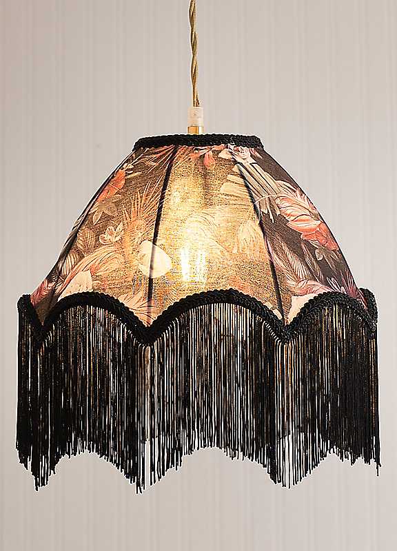 Rosette is a Victorian-inspired light shade with a twist of tropical flair. Featuring a playful flamingo pattern and long black tassels, it's as bold as it is beautiful. The reversible gimbal makes it perfect for both ceiling lights and floor lamps, offering versatility with style. Whether you're illuminating a lounge or adding drama to a reading nook, Rosette brings a dash of exotic charm with a touch of Victorian elegance.Bulb Required: BC B22Primary Material: FabricDimensions approx. 17.5H x 30W x 30D cm
