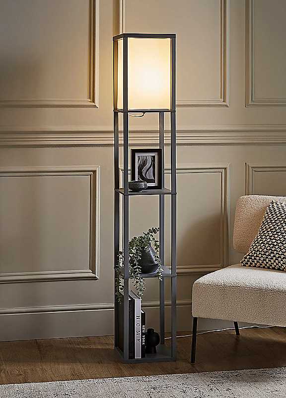 Is it a light? Is it a shelf? It's both! The Struttura floor lamp combines sleek lighting with three handy shelves for a 2-in-1 marvel. Finished in an on-trend grey finish, it's perfect for displaying your favourite bits and bobs, or leave them empty for a minimalist statement. This wooden wonder is as clever as it is stylish, lighting up your room while keeping your things organised. Who knew functional could look this fabulous?