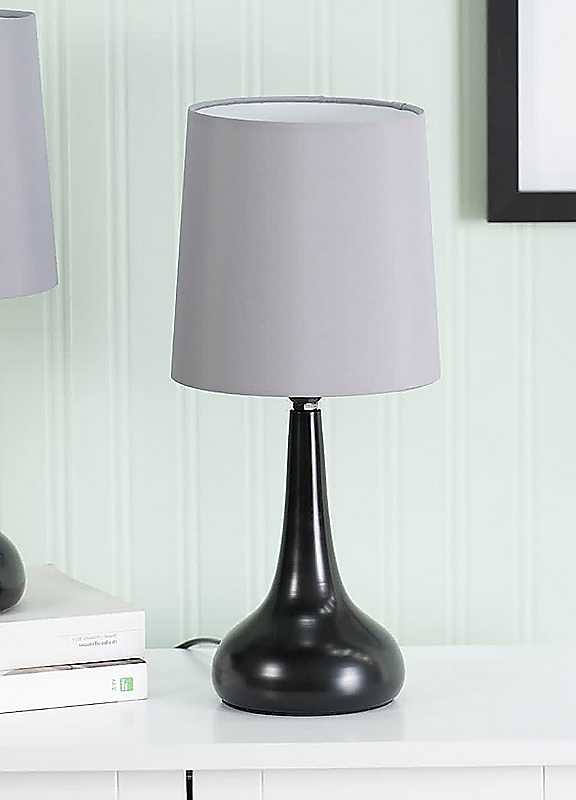 ValueLights Teardrop Pair of Black Touch Table Lamps with Grey Shades