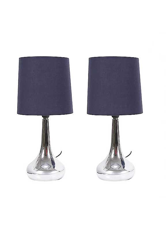 ValueLights Teardrop Pair of Chrome Touch Table Lamps with Cream Shades - Navy
