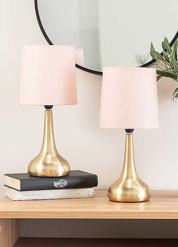 ValueLights Teardrop Pair of Gold Touch Table Lamps with Cream Shades - Blush