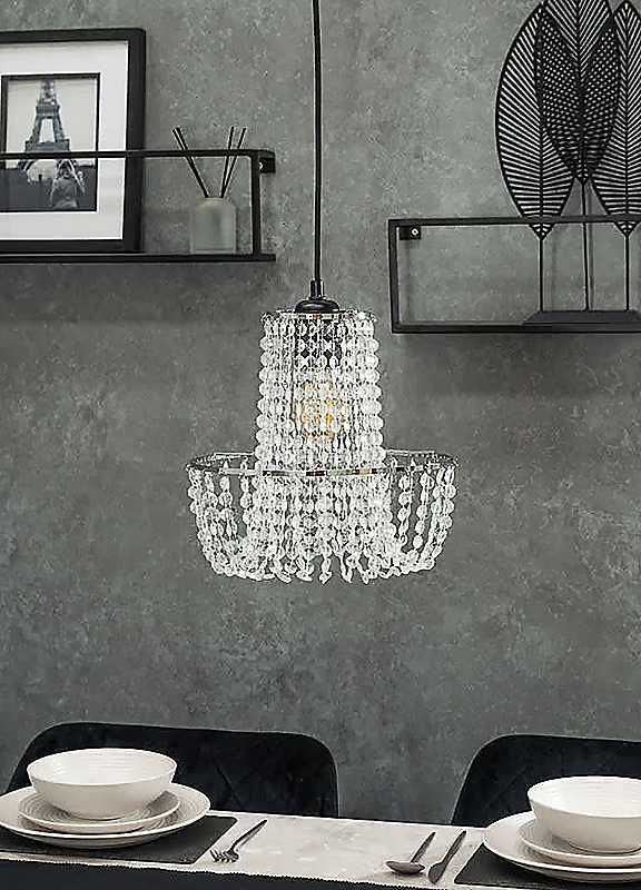 Experience modern elegance with these beautiful intricate jewel detailing lampshades. With their unique design, these pendant shades are the perfect statement piece for your home. The acrylic jewel droplets add a glamorous and sophisticated feel. Easy fit pendants are ideal for a quick style change without needing an electrician. These pendants look just as effectively switched off as they do on.Brand: ValueLightsNo electrical installation required - simply fit to existing pendant lamp holderPrimary Material: Plastic - Acrylic, Secondary Material: SteelDimensions approx. 28H x 28W x 28D cm | pendant light shades, living room pendant, decorative pendant lights, clear pendant lighting, dining pendant light, tear drop pendant, steel hanging lights, crystal pendant lighting, pendant light fitting, acrylic pendant light, contemporary pendant lights, silver pendant light
