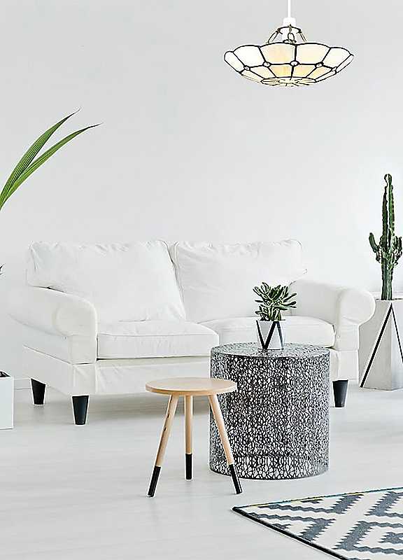 Give your ceiling a glow-up with this fab Tiffany inspired pendant shade! Bursting with white bejewelled panels, and classic art deco vibes, it clips onto your existing lamp holder in seconds; no tools, no fuss, just instant impact. With its leaded stained-glass design and vintage charm, it's a total show-off (in the best way). Perfect for adding a splash of style and character to any room that needs a little extra wow! | pendant light shade, ceiling lamps for living room, art deco lamp shade, glass lamp shades, stained glass lamp shades, tiffany lamp shade, cream lamp shade
