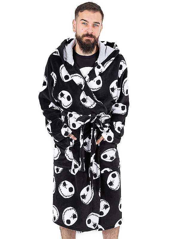 Wrap up comfy and cosy for a movie night with the pumpkin king of Halloween town! This Tim Burton Nightmare Before Christmas dressing gown comes in black and white featuring a Jack Skellington all over print making a must have outfit for Halloween and bedtime. This men's Disney robe has long sleeves, an adjustable belt, two handy pockets and a hood for extra warmth making an awesome gift; ideal for birthdays, Christmas and special occasions. Made from super soft polyester, this adult pyjamas robe is sure to make lounging much more fun. This item is 100% genuine licensed Disney Tim Burton merchandise and features official branding throughout. We want you to get the most out of your new gown, so please be sure to follow all care label instructions and contact our dedicated customer service team for any additional information or sizing queries.Machine washable or professional dry clean100% PolyesterKeep away from fire.