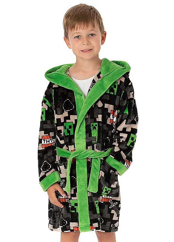 Wrap up cosy in this Minecraft dressing gown for an action-filled night of Minecraft gaming! The nightwear gown lets them dress in style with their favourite video game enemy and weapon. It comes in grey and green, featuring the creeper and a TNT explosive, making it a must-have for fans. This bathrobe has long sleeves, two handy pockets, and an adjustable belt, perfect for relaxing and having a game night. It is made from polyester, ensuring it is soft and comfortable. This outfit is the perfect addition to their collection. Take care of me - we really want to ensure you experience the longest life with your product, so please follow any care instructions provided with your product and do not hesitate to contact our customer care team if you have any queries.Machine washable or professional dry clean100% PolyesterKeep away from fire.