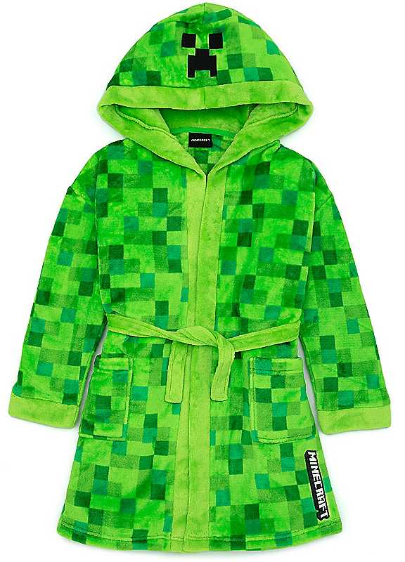 Get ready to game in cosy and comfortable creeper style with this awesome Minecraft dressing gown for boys and girls. Perfect for them little gamers who love playing the popular Mojang video game, Minecraft. This Minecraft creeper bathrobe for children and teens comes with long sleeves, a super fluffy hood, two handy pockets for carrying your gamer remote, snacks and goodies, finished with a soft adjustable belt. The creeper robe for boys is perfect for keeping warm during those colder nights, Minecraft lounging, gaming and also awesome as a Minecraft creeper costume. The Minecraft bedtime robe for kids features the iconic green pixelated block print as seen in the Minecraft video game in an all over print style, along with a detailed hood featuring fan favourite character, the creeper's face, making more Minecraft fun at bedtime. The creeper bathrobe for him features the Minecraft logo in bold, making this loungewear robe a must have Minecraft gift for gamers. The creeper dressing gown for boys and girls is made from 100% polyester for a super cosy and fluffy feel. This boys Minecraft creeper robe is sure to make an awesome gift for birthdays and occasions. This item is 100% genuine licensed Minecraft merchandise and features official branding throughout. We want you to get the most out of your new dressing gown, so please be sure to follow all care label instructions and contact our dedicated customer service team for any additional information or sizing queries.Machine washable or professional dry clean100% PolyesterKeep away from fire.