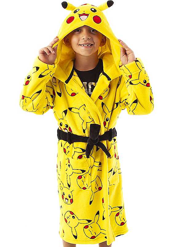 Comfort is key when it comes to your little ones bedtime. With this cosy Pikachu bathrobe, your little Pok©mon fan will be sure to experience maximum comfort. This Pok©mon bathrobe for boys and girls features an all over print of the well loved and fan favourite Pok©mon character: Pikachu, with a fun fleeced hood showcasing Pikachu's face in bold, finished with long sleeves and a black tie belt perfect for getting cosy at bedtime and for Pok©mon costume parties! Made from 100% polyester, this Pok©mon dressing gown for children and teens is sure to put a smile on your little ones face. This item is 100% genuine licensed Pok©mon merchandise and features official branding throughout. We want you to get the most out of your new bathrobe, so please be sure to follow all care label instructions and contact our dedicated customer service team for any additional information or sizing queries.Machine washable or professional dry clean100% PolyesterKeep away from fire.