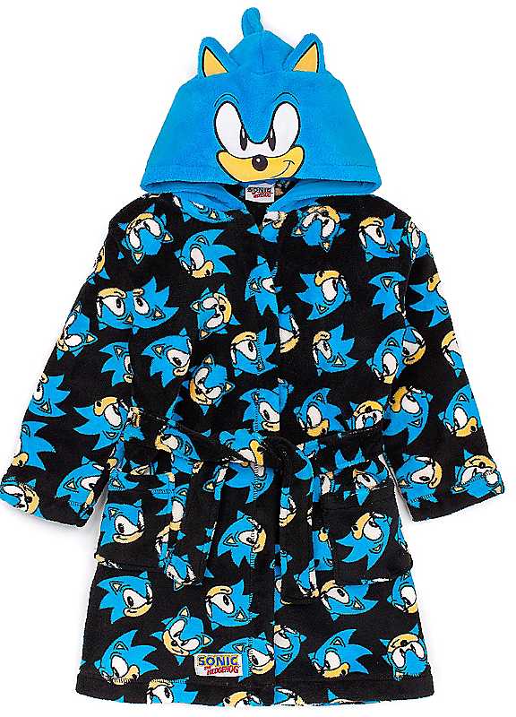 Get comfy and cosy whilst wearing this super soft Sonic The Hedgehog character dressing gown; it will sure make bedtime and lounging around at home much more fun! This Sega Sonic bathrobe for boys and girls features an all over print of the playable character with a fun fleeced hood showcasing Sonic's face with 3D spiked hair and ears making a must have outfit for fancy dress parties and gifting! Made from 100% polyester, this blue nightgown for children and teens is sure to put a smile on your little one's face. This item is 100% genuine licensed Sonic The Hedgehog merchandise and features official branding throughout. We want you to get the most out of your new pyjamas robe, so please be sure to follow all care label instructions and contact our dedicated customer service team for any additional information or sizing queries.Machine washable or professional dry clean100% PolyesterKeep away from fire.
