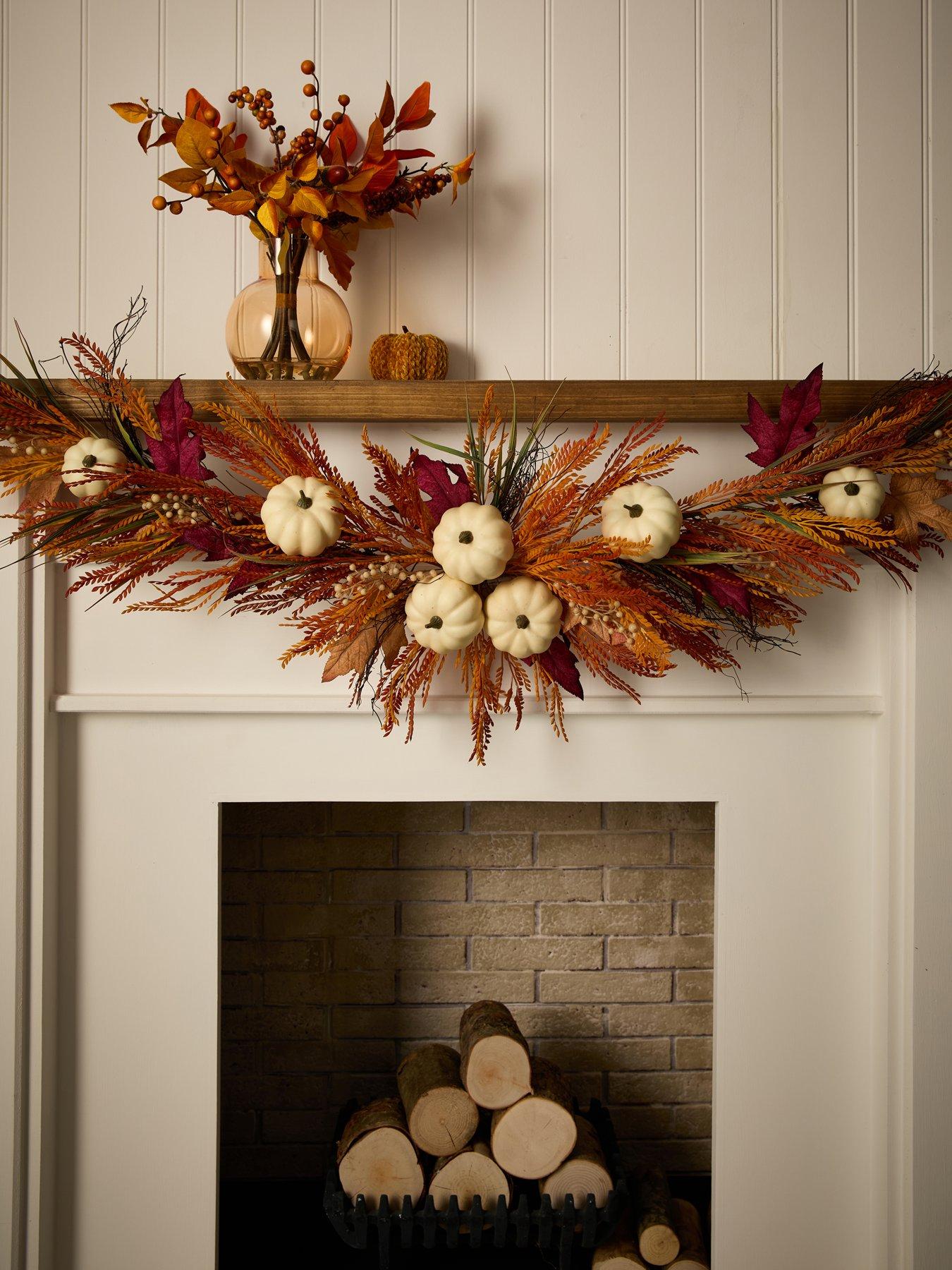 Very Home Grasses Swag Autumn Decoration - 36 inch Featuring a rich combination of pumpkins and wheat, this swag is a great way to celebrate the autumn harvest and the changing of the seasons. Depth: 900 MM Height: 120 MM Material Content: NATURAL,METAL,PLASTIC, POLYFOAM Width: 300 MM