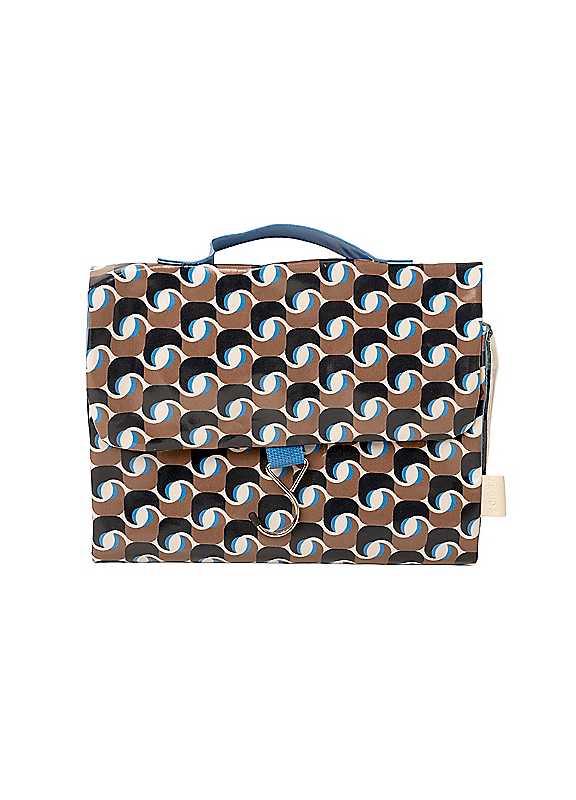 Keep your toiletries beautifully organised with our stylish Threefold Hanging Wash Bag in the Geometric Azure print. This contemporary design features a bold geometric motif in cool azure blue tones, accented with complementary shades of brown, black and white. Its clean, modern aesthetic makes it a versatile unisex choice for travel and everyday use.The hanging, space-saving design makes it ideal for compact environments such as gym changing rooms, cruise cabins, aircraft toilets, caravans small en-suites and shared bathrooms.Unfold the bag to reveal:Hang-anywhere metal hook for convenient access wherever you are.Four-section interior, including three spacious clear compartments for easy visibility.Detachable bottom pouch, secured with hook-and-loop fasteningHidden 'secret' pocket for discreet storage.Folding design with secure mag dot fastening and a practical grab handle.Crafted from premium cotton canvas, coated with durable waterproof PVC to contain leaks, and finished with an eco-conscious lining in matching azure RPET210D-made from 100% recycled polyester derived from plastic bottles. This sustainable material is strong, tear-resistant, lightweight, and water-resistant, helping reduce plastic waste and lower your carbon footprint without compromising quality.Colour: Azure lining to complement the geometric designFastening: Mag dotInterior: Four sections, one detachable with hook-&-loop fasteningFeatures: Convenient folding shape, metal hook, grab handleReduces plastic wasteLower carbon footprint compared to virgin polyesterDurable, lightweight, & water-resistantBody: 100% CottonLining: 100% Recycled PolyesterDimensions approx. 22H x 29W x 6D cm
