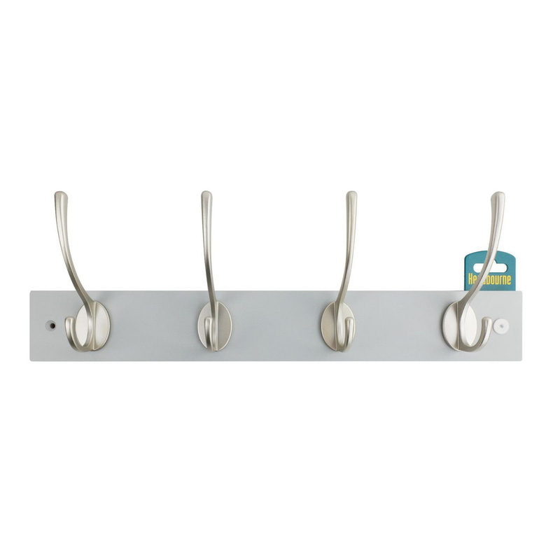 Victorian Satin Nickel on Bloc Board Hookrail Dove Grey 4 Hook | Victorian Satin Nickel on Bloc Board Hookrail Dove 4 Hook in Grey