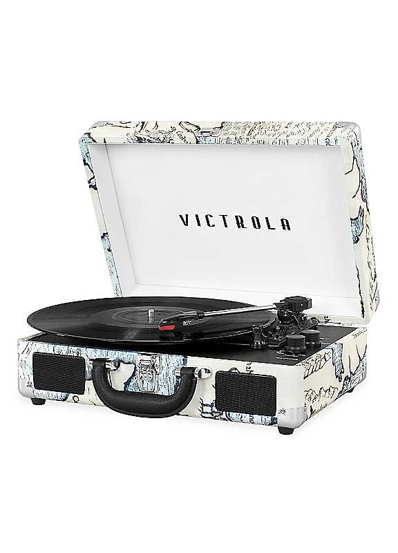 Victrola's Journey portable suitcase record player is a classic, loaded with features like an easy carry handle, so you to listen to your favourite tunes wherever you are! Built in stereo speakers provide crisp, clear sound, or you can plug in your favourite headphones and get lost in the music. The Journey features a 3 speed, belt driven turntable to reduce vibration, as well as wireless Bluetooth connectivity, so you can listen from up to 33 feet away. In your home or on the go, your music will never be far!Features a 3 speed, belt driven turntable for all your favourite (33 1/3, 45, 78 RPM) records. Also features RCA jacks and a headphone jackPortable design with easy carry handle allows you to take your songs on the goWireless Bluetooth connectivity lets you stream your music without any messy cordsBuilt in stereo speakers!Weighs 6 lbsDimensions approx. 13.9 x 10.1 x 5 inch