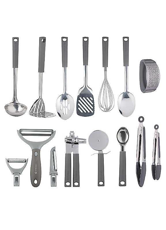 The Viners® 13 Piece Utensil and Gadget Set is your all-in-one solution for tackling every kitchen task with ease, comfort, and confidence. Expertly crafted from high-quality stainless steel, each piece is built to deliver strength, durability, and timeless style, making it a must-have for any home cook.This comprehensive set includes: Slotted Turner - ideal for flipping and draining. Solid Spoon & Slotted Spoon - perfect for stirring, mixing, and serving. Ladle - designed for effortless serving of soups and stews. Masher - smooth and efficient potato mashing. Balloon Whisk - aerates for fluffy mixtures and silky sauces. Can Opener with Bottle Opener - versatile and easy to use. Pizza Cutter (8cm) - sharp and precise slicing. Ice Cream Scoop - glides through hard ice cream with ease. Garlic Press - crush cloves quickly and cleanly. 18cm and 23cm Food Tongs - two sizes for versatile gripping and serving. 3-in-1 Switchable Peeler - features straight, julienne, and wide blades. With practicality at its core, the entire set is dishwasher safe for effortless cleaning and includes integrated hanging hooks for easy storage.Stainless Steel | cooking utensil set, stainless kitchen utensils, food gadgets, stainless cooking utensils, kitchen utensil set, stainless kitchen tools