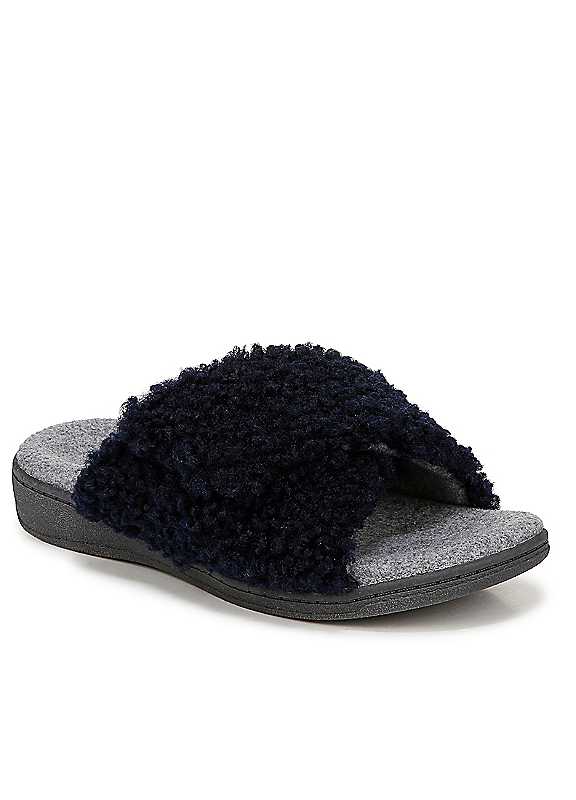 Vionic Relax II Regular Fit Arch Support Open Toe Slippers - Navy - Size 8