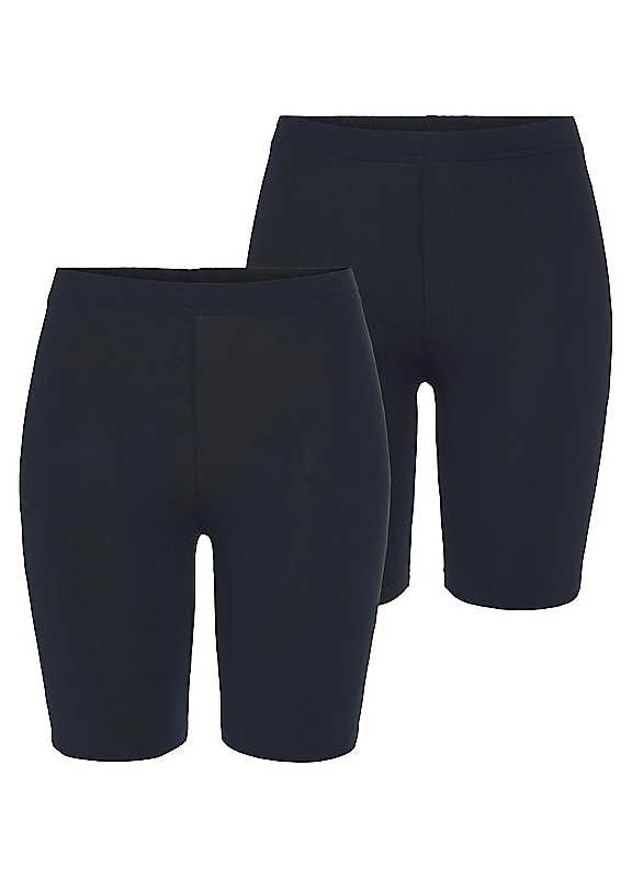 Comfortable cycling shorts in a practical double pack. The stretch content of the soft cotton guarantees a perfect fit. Colour Mix 1: 2 x Black Colour Mix 2: 1 x Black & 1 x White Colour Mix 3: 1 x Black & 1 x Blue Basic cycling shorts Body-hugging fit Stretch waistband Always combined with black in a double pack Washable 95% Cotton, 5% ElastanePlease Note: European sizing tends to run smaller than UK. We suggest sizing up for the perfect fit!