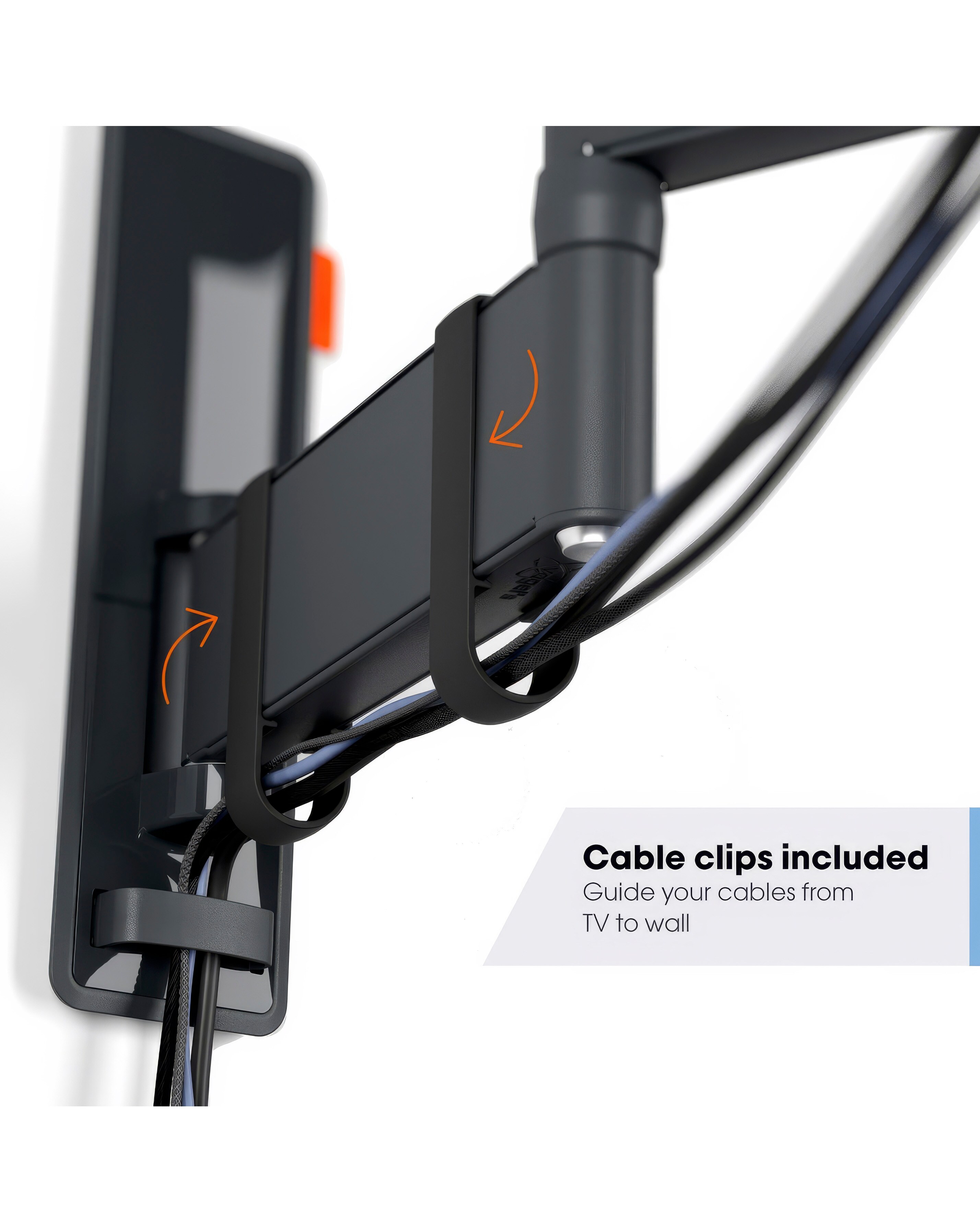 Wherever you are in the room, you can enjoy your TV from any angle with the COMFORT Full-Motion+ TV wall mount. The long arm and One-Finger Movement mean that you can effortlessly turn your TV to any desired position. You can move your screen so lightly and smoothly with just one finger. The TV wall mount also features the TiltAnchor system for safe tilting and fixing the position of your TV. Want to know how far your TV can turn? Enter your TV model on this page and see immediately whether your TV can be turned perpendicular to the wall! OneFinger Movement - Effortlessly rotate your TV into any position, Keep your TV always level (horizontally and vertically), Cable clips included: Guide your cables from TV to wall, Protective TV patches - Protect the rear of your TV with soft protective patches, Turn your TV up to 180 degrees thanks to long arms of 58 cm, Warranty - 10 years parts and labour